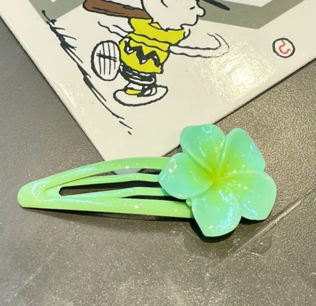 Elegant 3D plumeria-style flower design. Strong and durable metal snap clips — easy to .wear, stays secure all day.