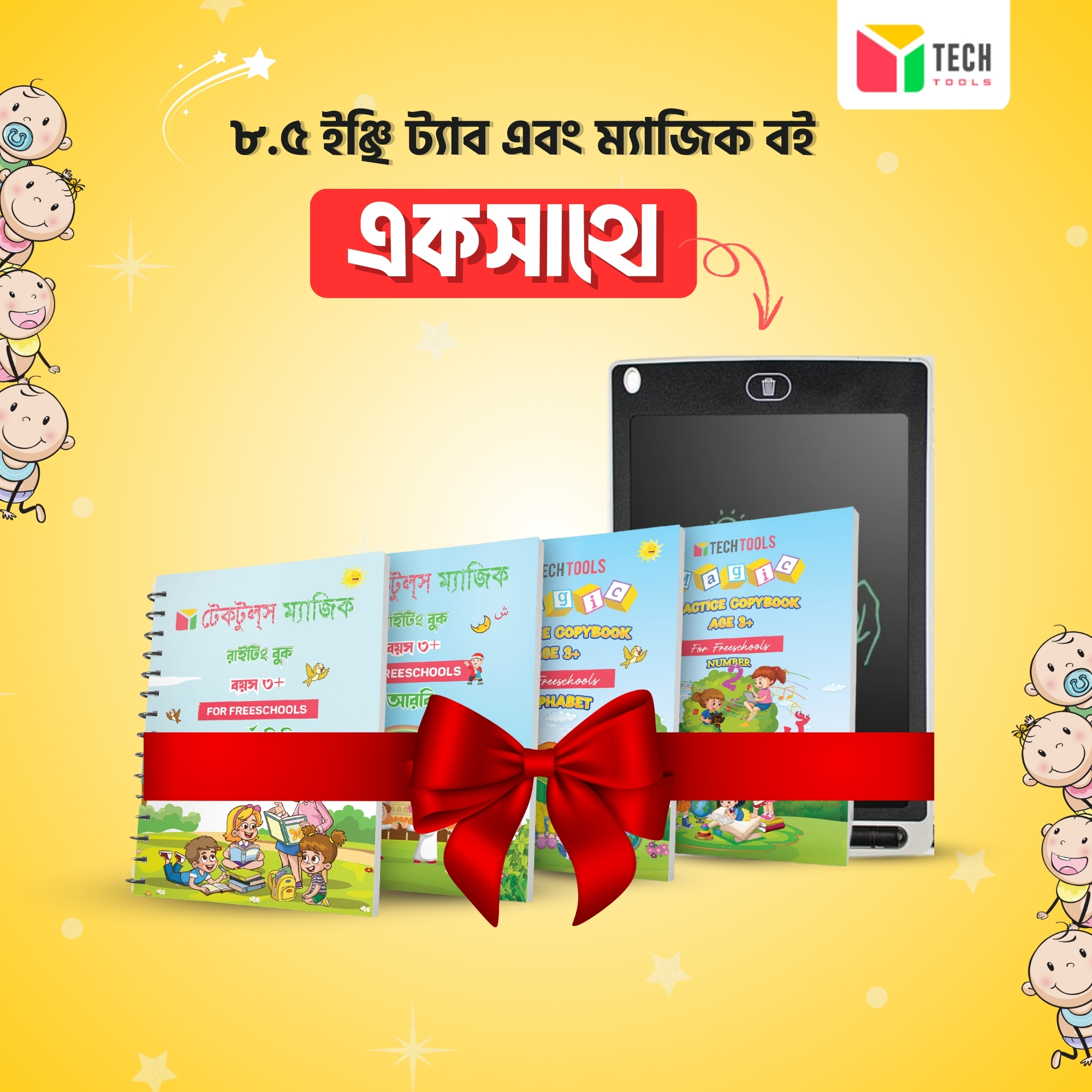 4 PCS Set Magic Practice Book with 8.5 inch lcd writing Tab gift pack For Kids