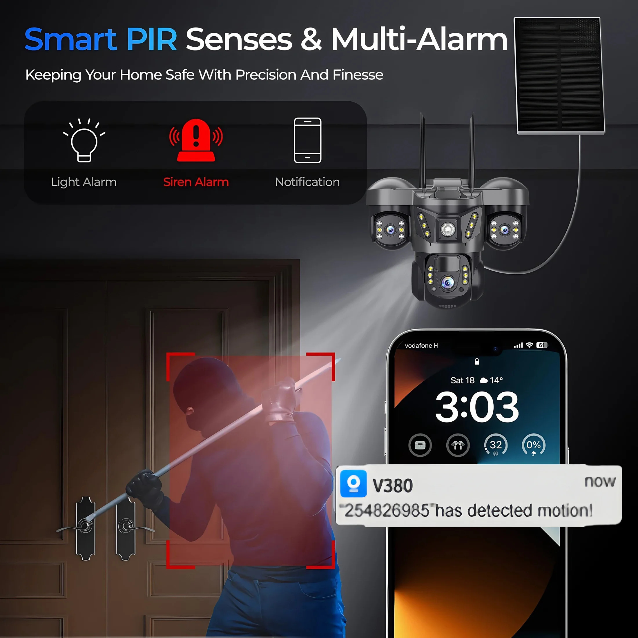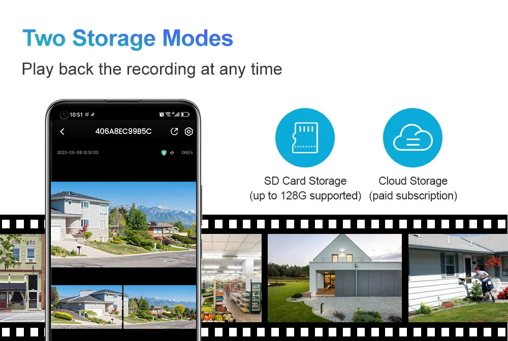 - Alarm System : Motion Detection + APP Push + Siren Alarm .