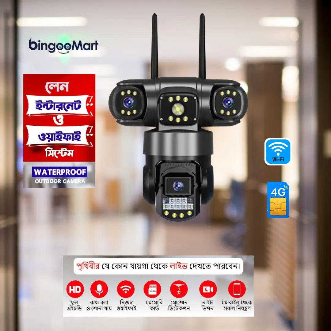 4G Sim Support V380 PRO Three Lens IP Camera HD 3MP+3MP+3MP Outdoor Waterproof Two Way Full Color Night Vision PTZ CCTV Security Camera