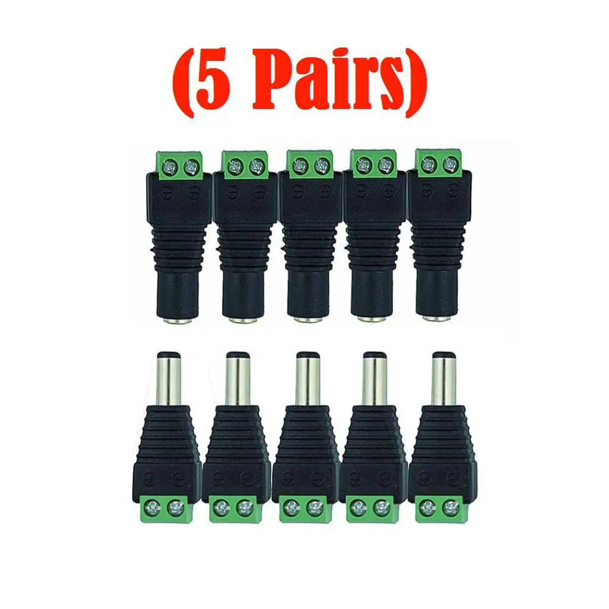 5 Pairs- 2.1X5.5Mm Dc Male Female Jack Plug Connector Power Supply Adapter For Cctv Camera Led Strip Lamp Lighting Lights