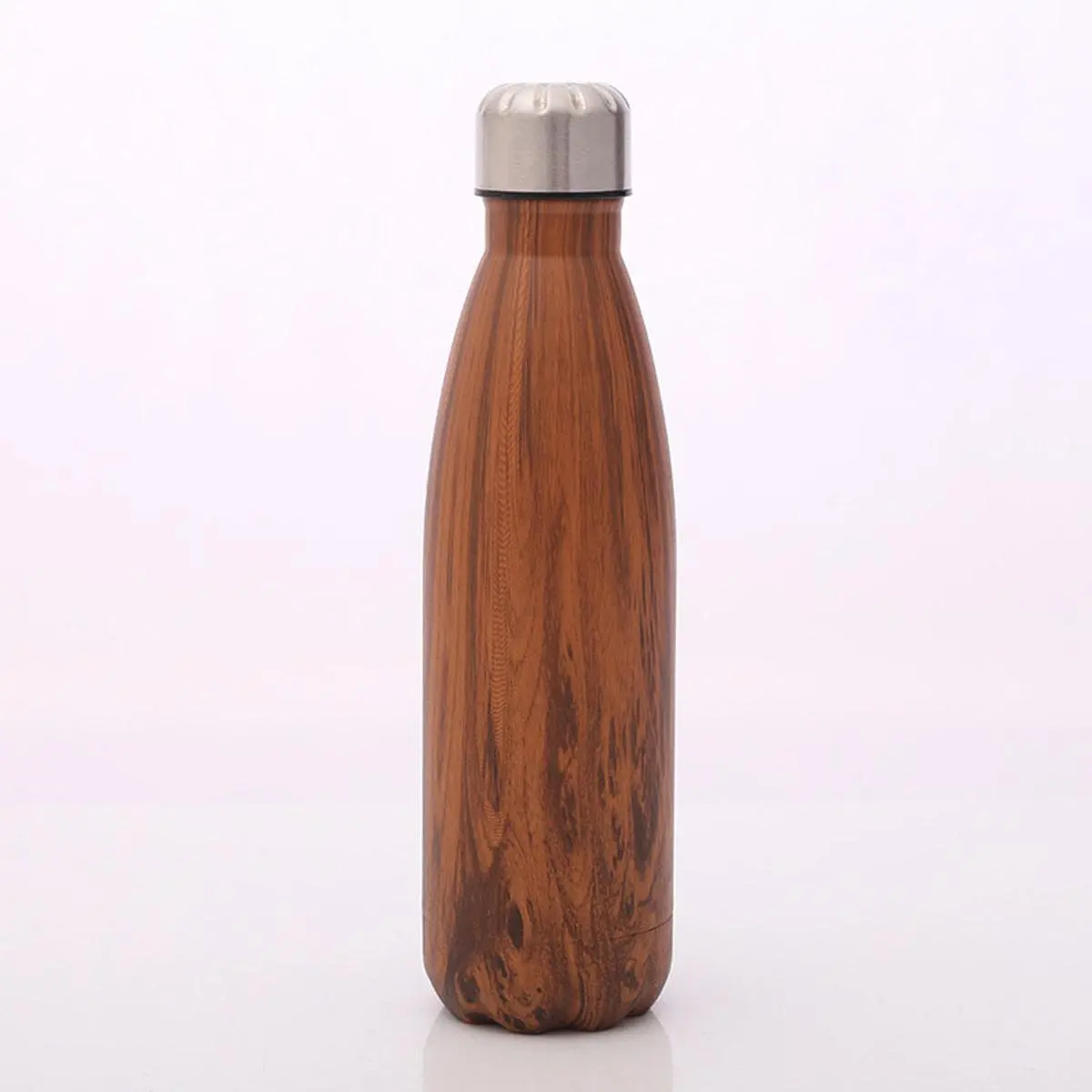 500ml Stainless Steel Insulated Cola Shaped Wood Grain Printing Water Bottle - Brown