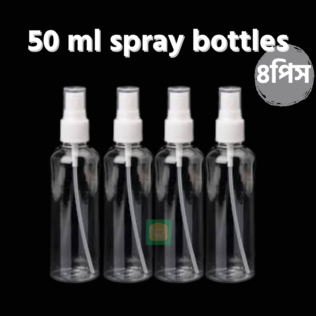 50ml Spray bottle Transparent plastic bottle- 4 pcs – perfect for perfumes, sanitizers, toners and travel-size cosmetics, designed for clean, even mist every time.