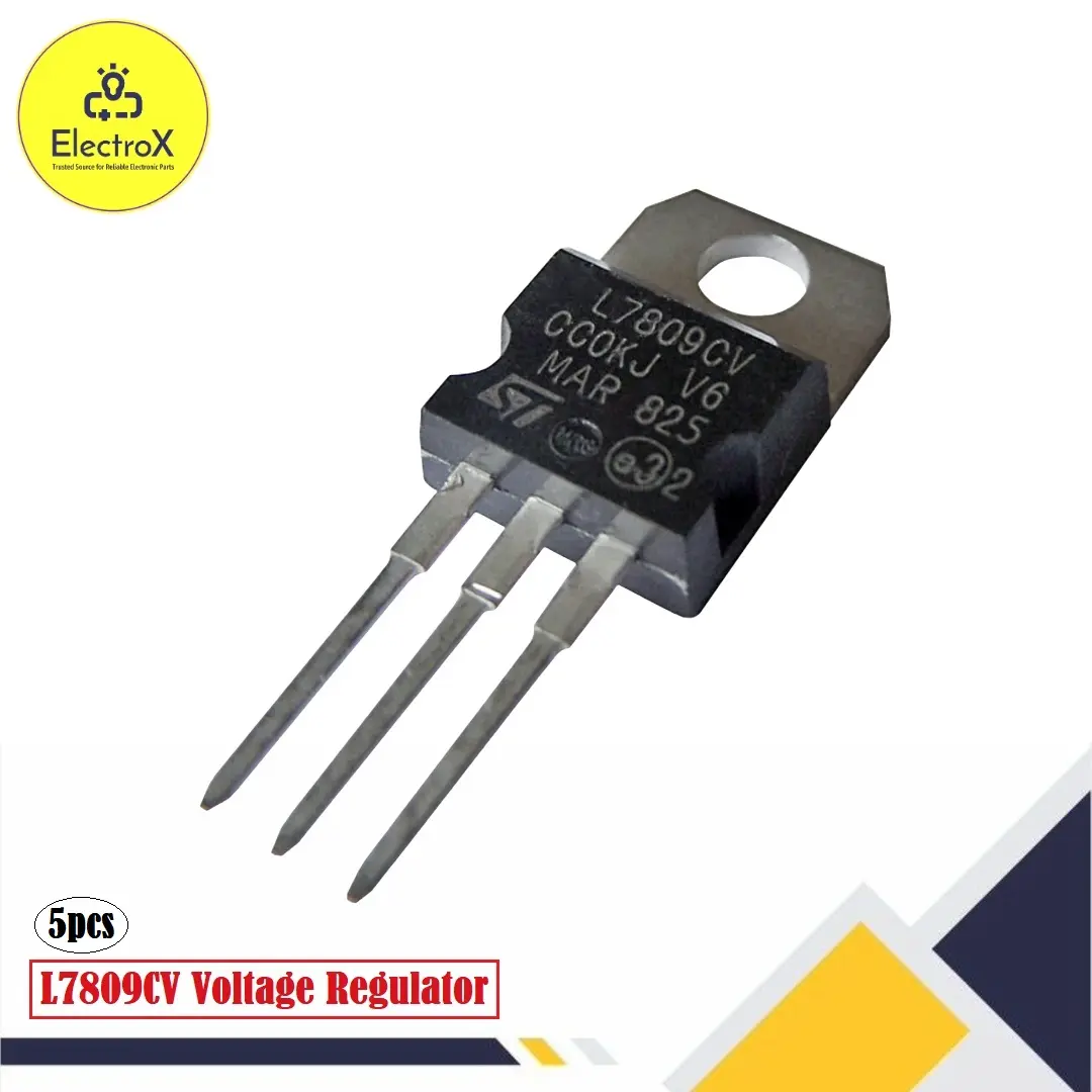 This series of fixed-voltage integrated-circuit voltage regulators is designed for a wide range of applications. These applications include on-card regulation for the elimination of noise and distribution problems associated with single-point regulation. Each of these regulators can deliver up to 1.5 A of output current. The internal current-limiting and thermal-shutdown features of these regulators essentially make them immune to overload. In addition, to use as fixed-voltage regulators, these devices can be used with external components to obtain adjustable output voltages and currents, and also can be used as the power-pass element in precision regulation. This Product Known as 9V Voltage Regulators, 9V Linear Voltage Regulators, L7809CV Linear Voltage Regulators, LM7809 Linear Voltage Regulator, LM7809 Voltage Regulators,9V Positive Voltage Regulator IC, Component, Electronic Components, IC, Integrated Circuits, LM7809, LM7809 5V Positive Voltage Regulator IC, LM7809 IC, Voltage Regulator IC, Voltage Regulators IC.