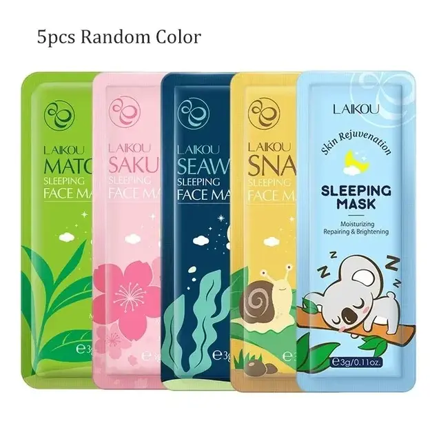 5PCS Laikou Sakura Snail Seaweed Matcha No Washing Sleeping Mask Cream Hydrating Face Mask Deeply Nourishing Skin Care Portable