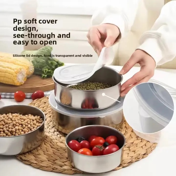- *Stainless Steel Bowl Set with Clear Plastic Lids can be nested together for convenient storage