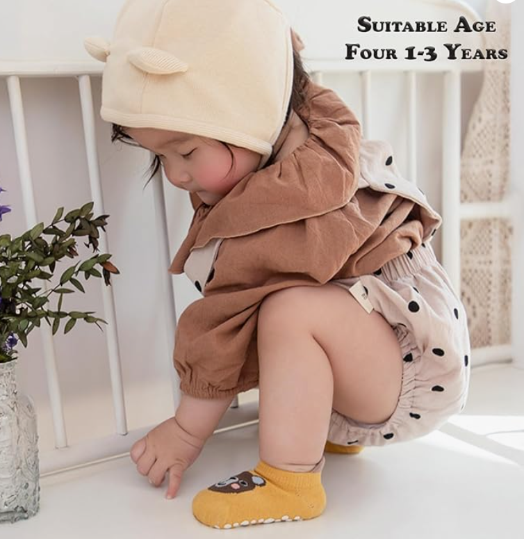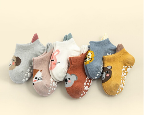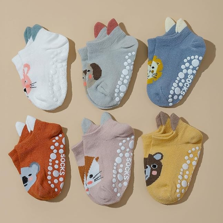 Anti-Slip Sole: The bottom of each sock is covered with silicone or rubber grips in a dot pattern to provide traction and prevent slipping, which is useful for babies learning to walk.