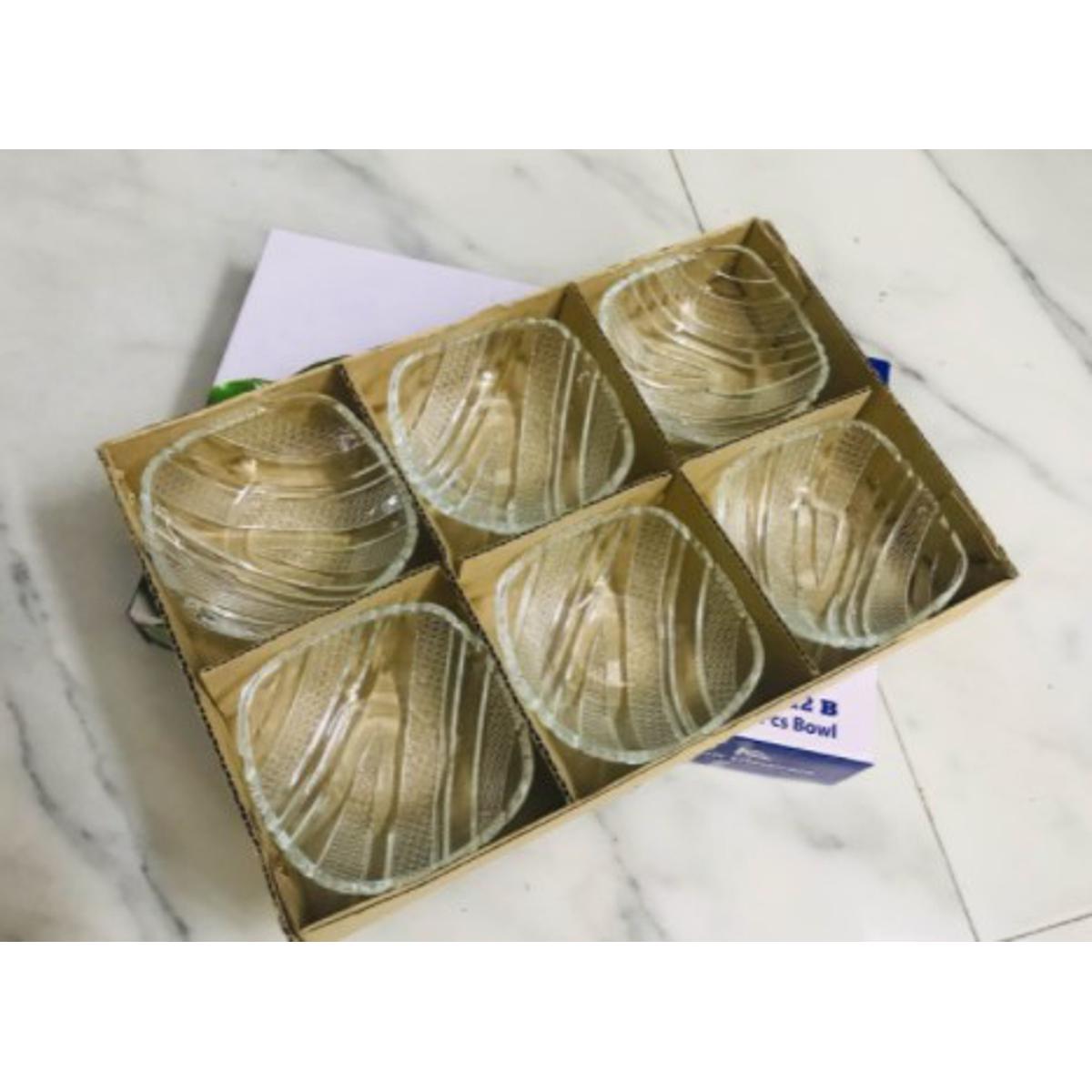 Quality: Crystal Glass Ware. Surface:Lead&Cadmium free glaze Desige:Clean dising with extra hing edge Cleaning:Dishwasher safe Application:Oven,Microwave,Freezer Usable. Capacity: 150ml Contains: Bowl 6pcs Soup, firni, salad, curry noodles etc can be served Beautiful colour. Made by GLASS bowls 3.5 inch