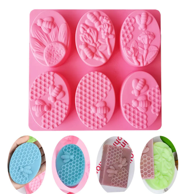 Create beautifully detailed bee-themed soaps and treats with this 6-piece Oval Bee Silicone Mold. Each cavity features charming designs such as honeycombs, flowers, and bees, giving your creations a professional, artistic look with ease.