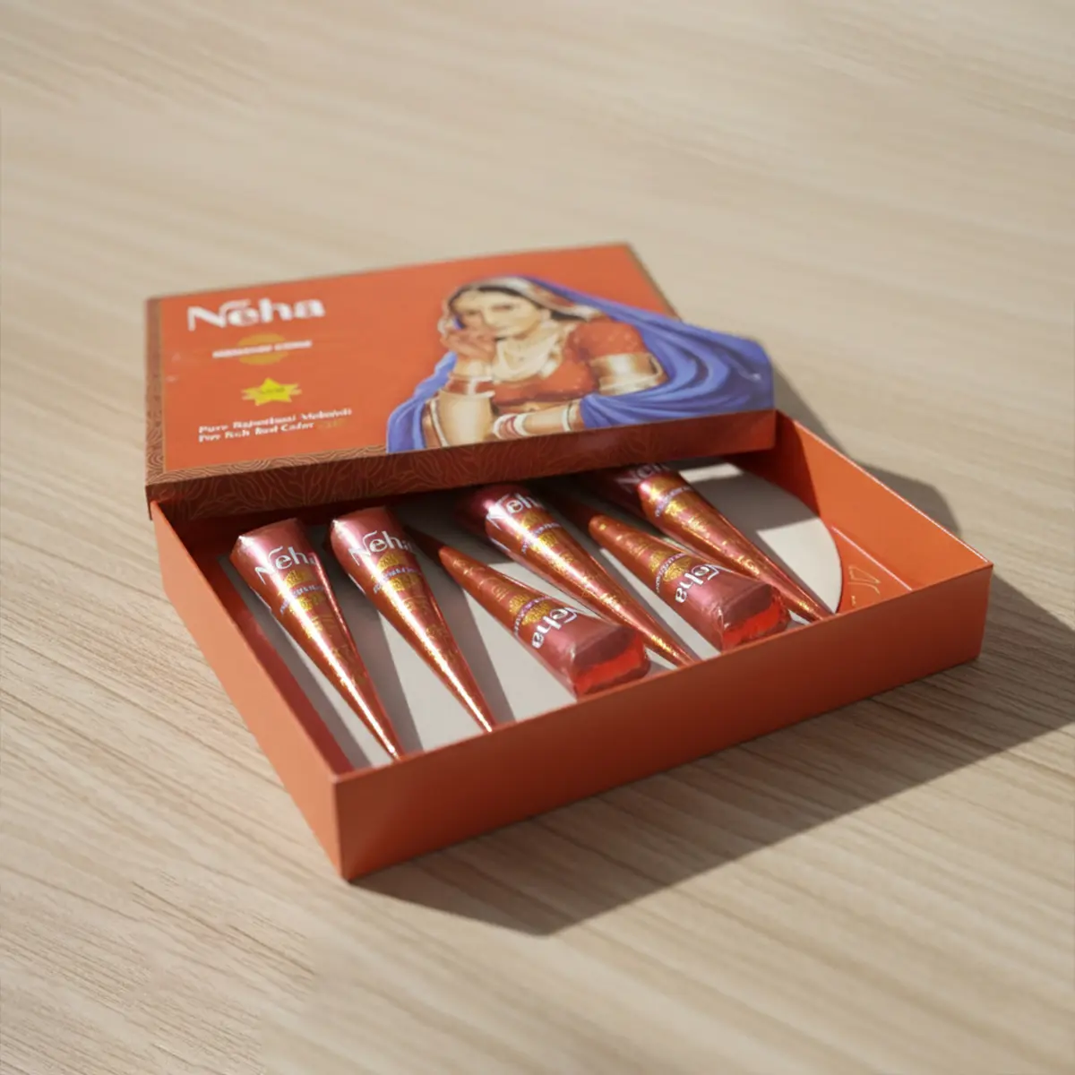 "productTitle": "6 Pieces Red Neha Cone Mehedi",