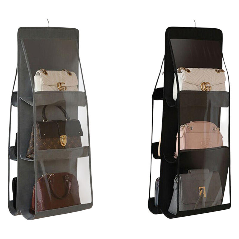 - Made of nonwoven, durable to use,resists tears and rips, breathable, soft and lightweight, protect your bags carefully.Size: Large handbag organizer 90 * 35 * 35cm, big capacity, the crystal see-through design and convenient file styling makes it easy to view and select the right bag for any occasion.