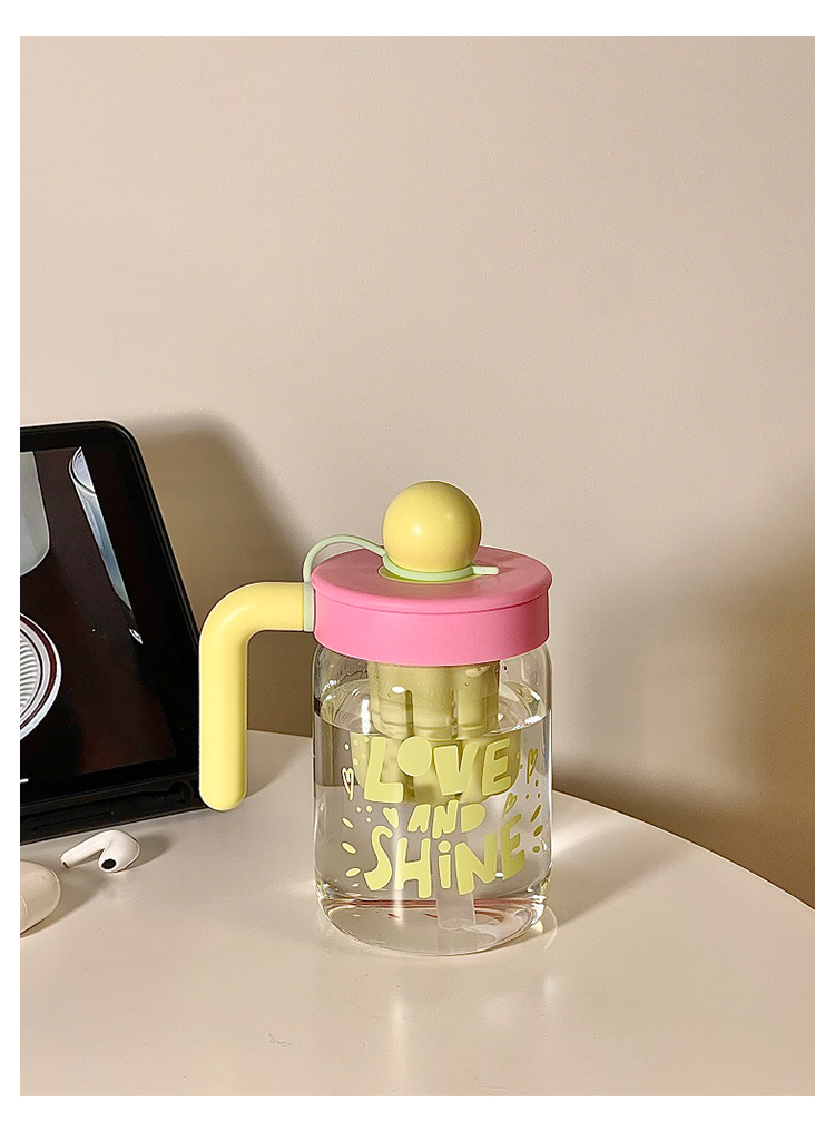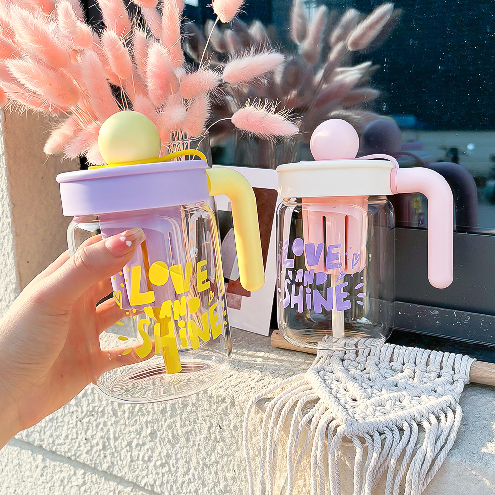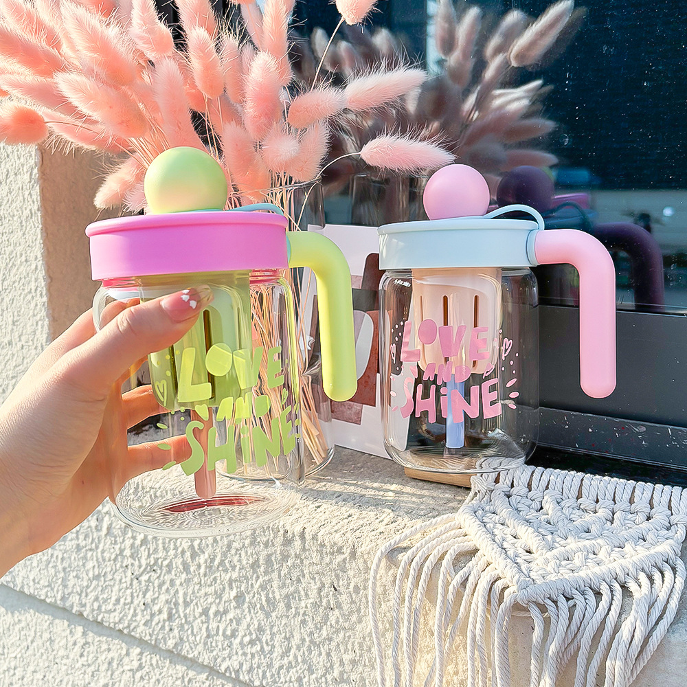 650ml Glass cup new high borosilicate handled coffee cup glass water cup cold drink cola beverage cup milk tea milk single layer cup with straw cap(Multicolor 1 pcs)