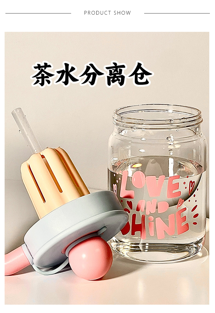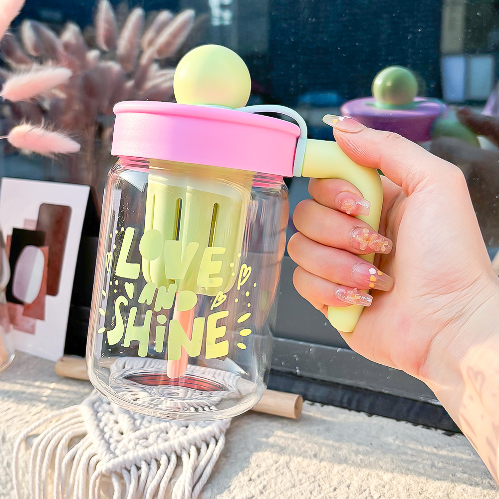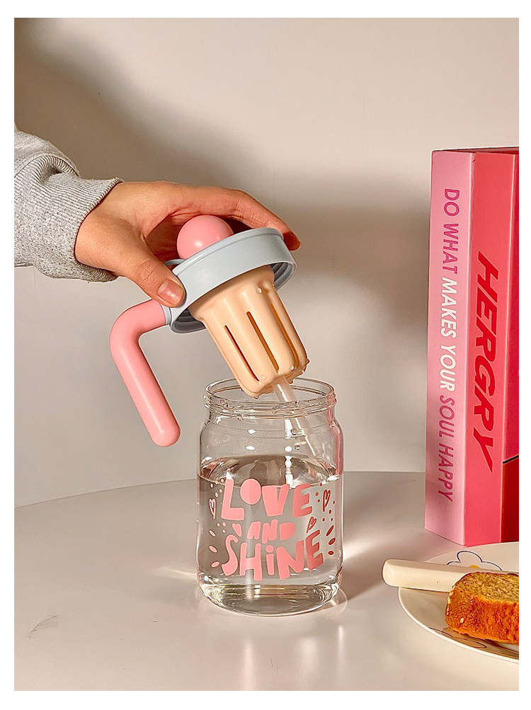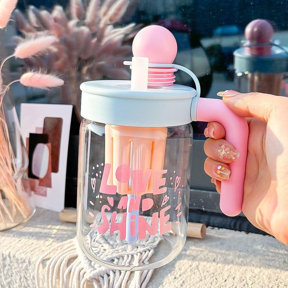650ml Glass cup new high borosilicate handled coffee cup glass water cup cold drink cola beverage cup milk tea milk single layer cup with straw cap(Multicolor 1 pcs)