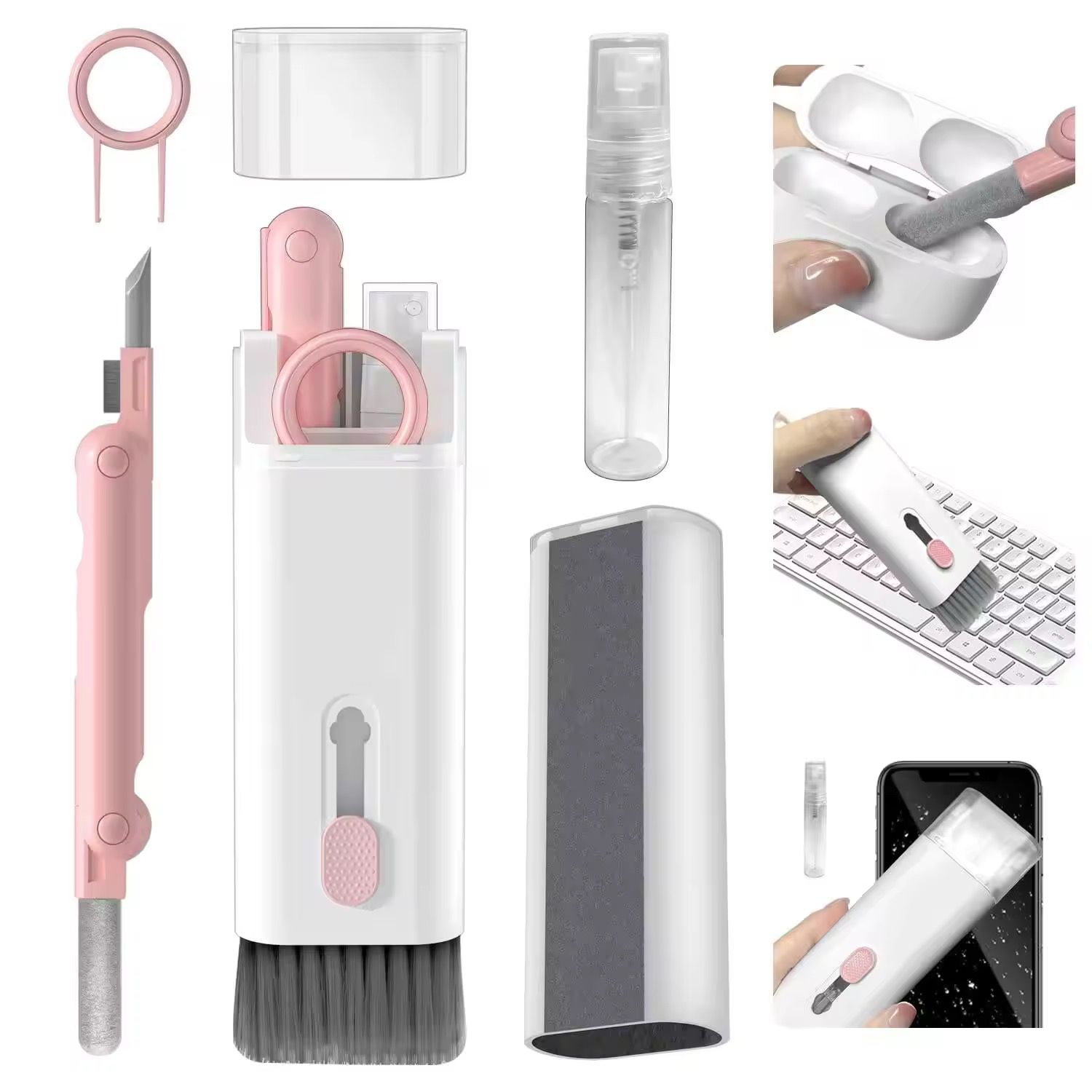 - 1. 7-in-1 Keyboard Cleaning Kit: Multifunctional keyboard cleaning brush combines five functions: silicone tip, flannel wipe, flocking sponge, key puller, hair brush for cleaning cracks, stains, limescale particles, dust and pull out the keycap.