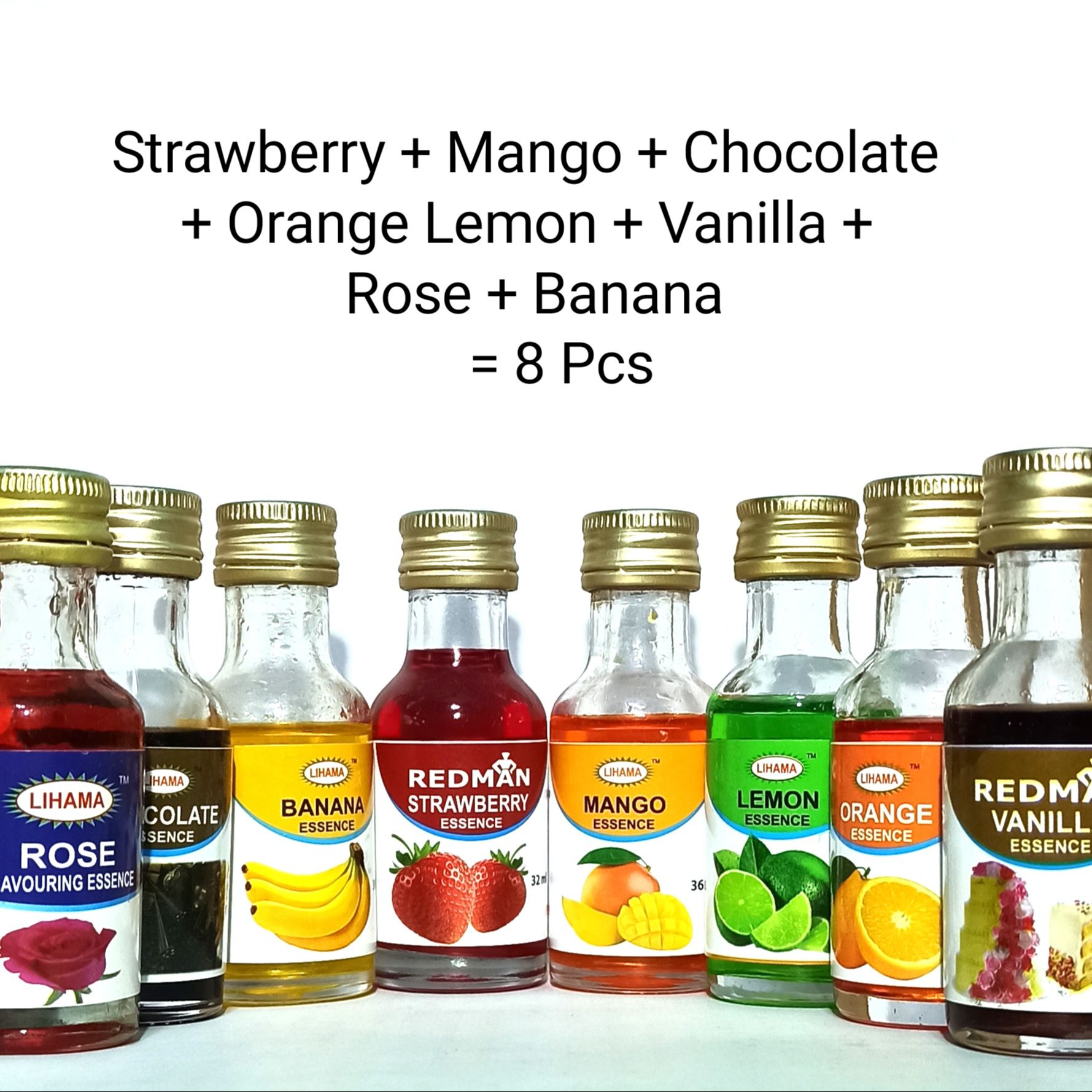 Product details of Hasan's Combo Flavour Set ( Mango + Strawberry + Lemon + Orange + Chocolate + Vanilla + Rose + Banana - 8 pieces / 28ml per piece