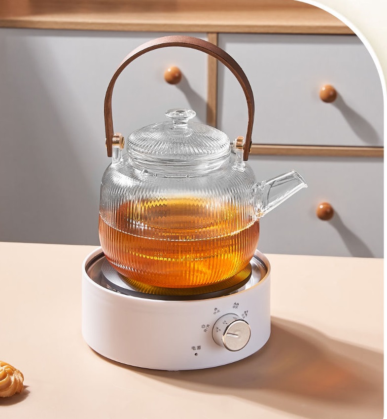 • Round shape Glass Tea Pot with Infuser Strainer
