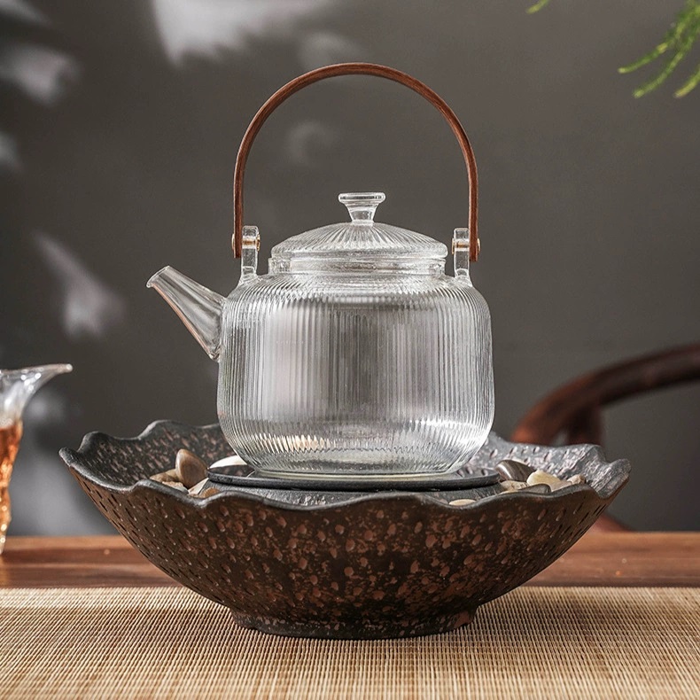 - • 800 ml Borosilicate Glass Heat Resistant Clear Leaf Teapot