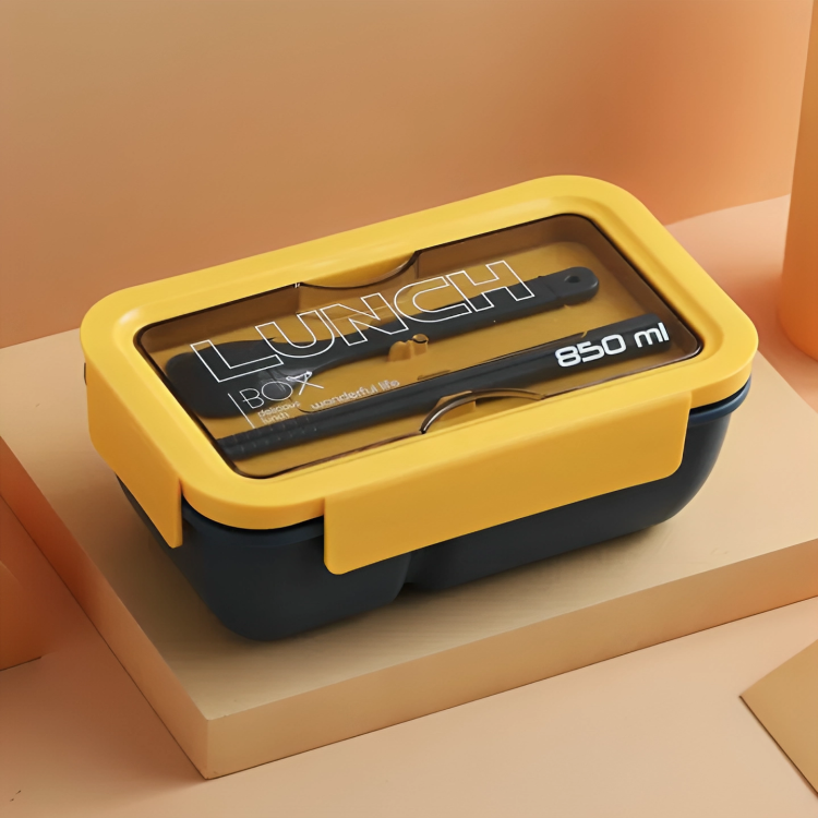 Product details of 850 Ml Leakproof Tiffin Box Free Spoon Chopsticks 2 Compartment Lunch Box Lite Weight Container For School Office-Yellow/Green