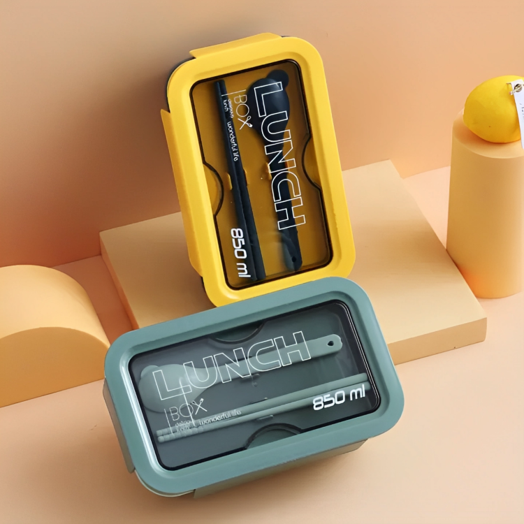 Product details of 850 Ml Leakproof Tiffin Box Free Spoon Chopsticks 2 Compartment Lunch Box Lite Weight Container For School Office-Yellow/Green
