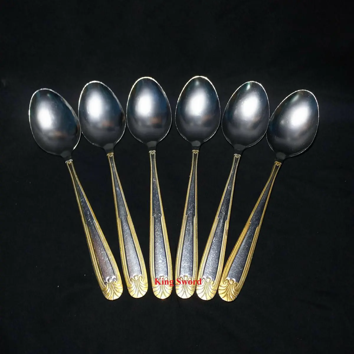 8''inch Stainless Steel Spoon 6 Piece Set- Gold Silver