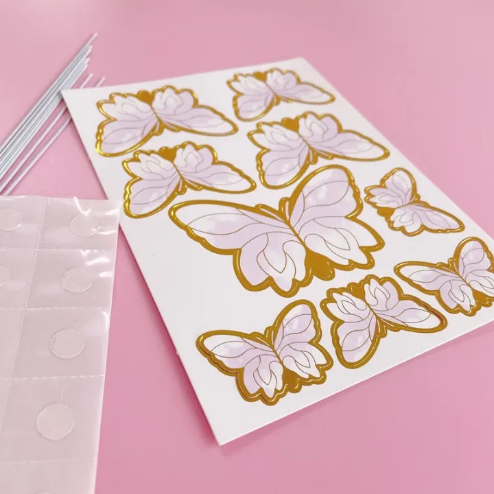 3. Easy to Use: Gently fold the butterfly stickers along the middle seal, and the 3D effect will appear. The sanitary paper can be placed directly on cakes and other foods. You also can use the glue and stick of the wrapping tape, and insert it into any part after the combination.