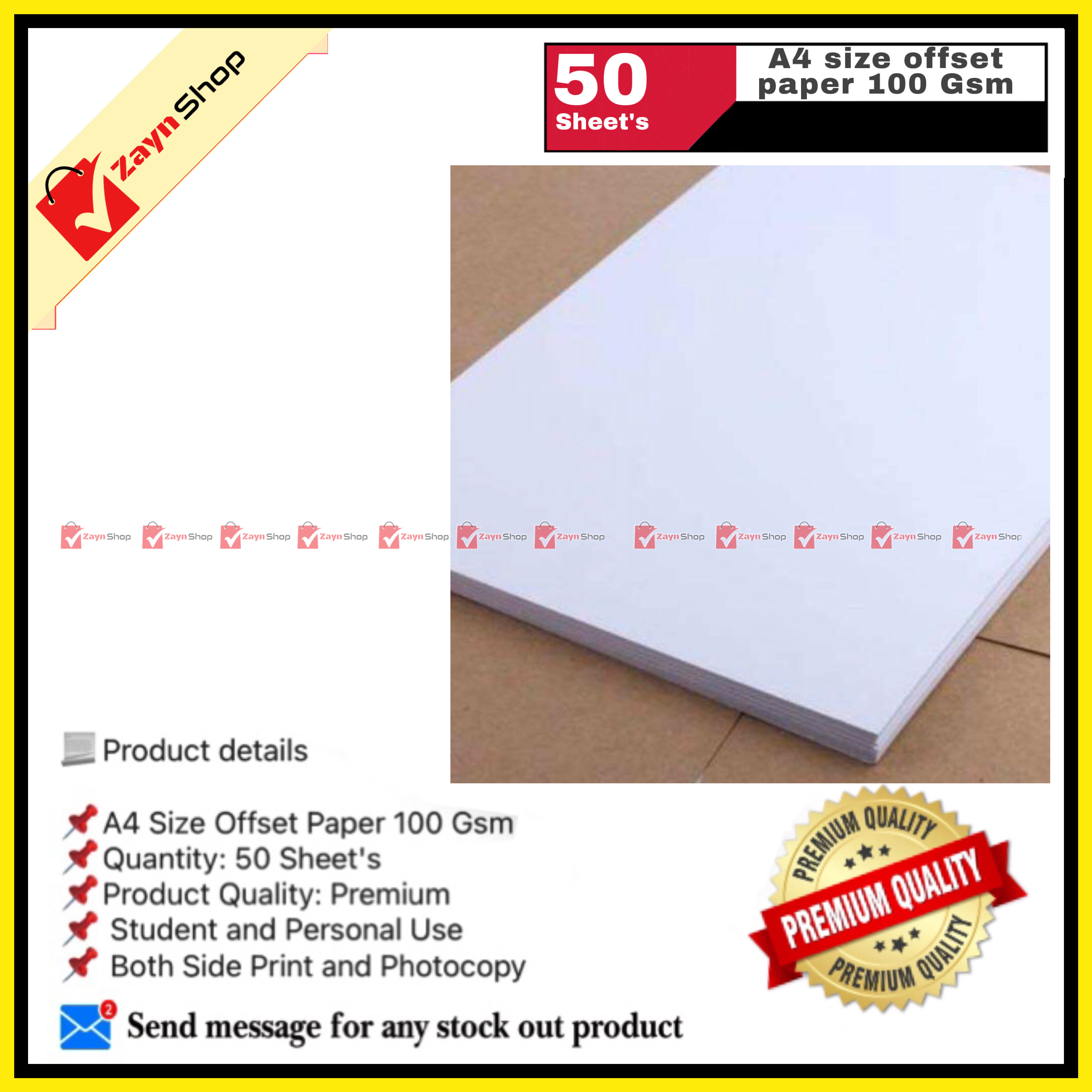Product details of A4 Size Offset Paper 100 Gsm ( 50 or 100 Sheets)
