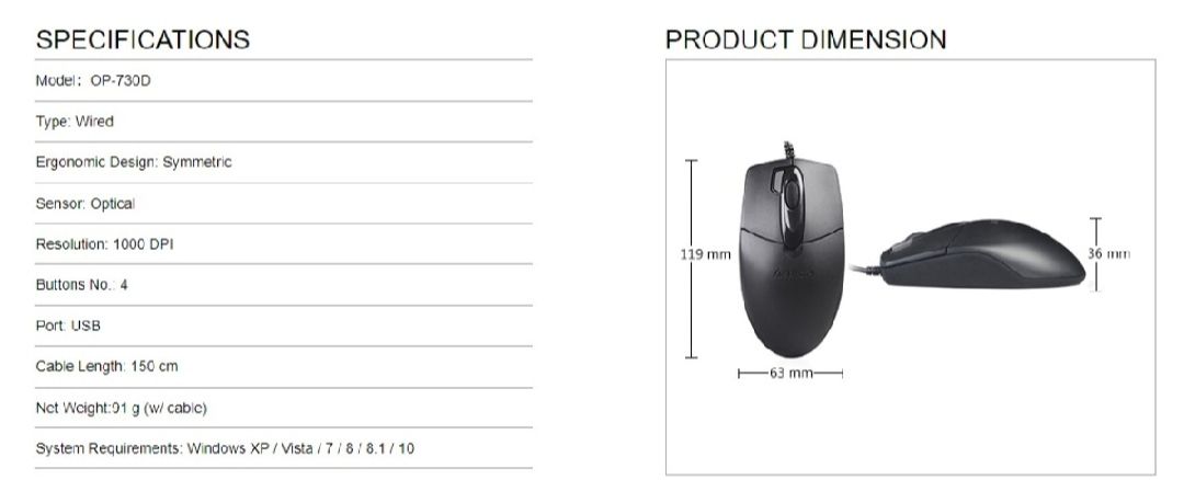 Product details of A4tech OP-730D 2x Click Optical Wired