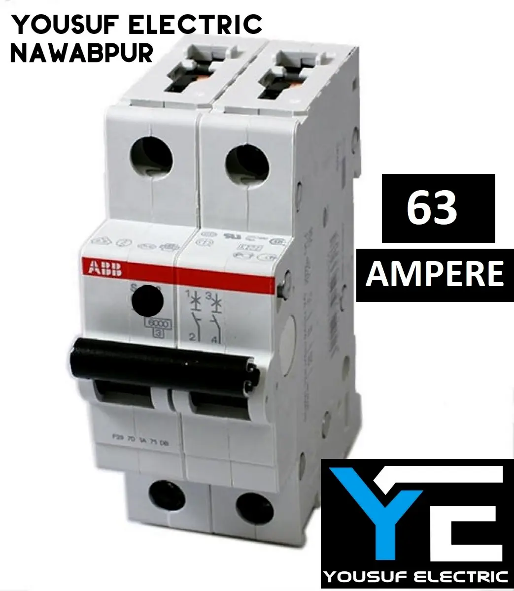 Abb Mcb 63 Ampere Dp High Grade China Miniature Circuit Breaker two Pole Double Phase - Power Bank Circuit - White