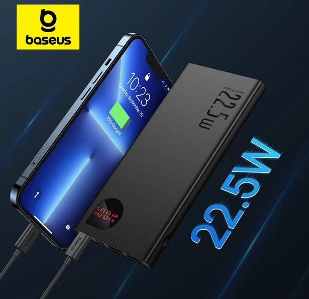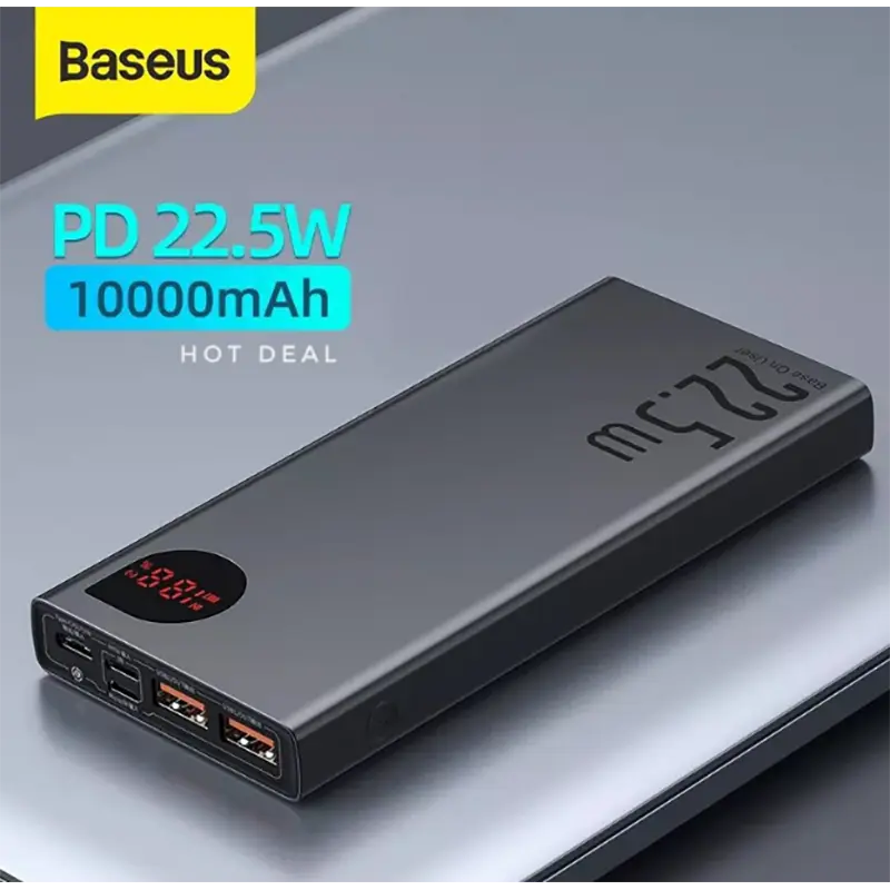 10000 mAh capacity PD 3.0 + QC 3.0 Two-way Quick Charge LED digital display screen 22.5W high power output for Huawei SCP 18W PD charging for iPhones Three inputs / Three outputs supports simultaneous multi-device charging. Stylish alloy plated shell with metallic luster finish 14mm thick – super thin power Specification: Brand: Baseus Model: PPIMDB Battery capacity: 10000mAh / 3.7V 37Wh Rated capacity: 5800mAh Battery Type: Polymer Battery Energy conversion rate: >= 75% Shell material: Metal