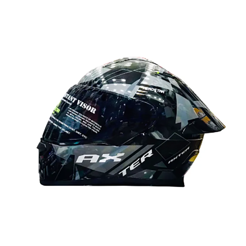 ● The Aerostar Axter D1 Black Grey Full Face Helmet combines rugged protection with a sharp, modern design for riders who prioritize safety and style. Constructed with a high-quality thermoplastic shell, it ensures durability and resistance to impacts, providing reliable safety on the road. The helmet features a sleek black and grey color scheme with streamlined accents that enhance its stylish appeal. Inside, a soft, breathable liner keeps you comfortable on longer rides, while an adjustable ventilation system ensures airflow and reduces heat buildup. With an anti-scratch visor and a secure fit, the Axter D1 offers both function and flair.