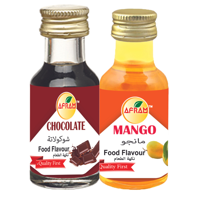 Brand: Afram Product Type: Food Flavouring Essence Permitted Food Flavour Flavour: Combo Food Flavour/ Essence Set of Chocolate+Mango Best Premium QualityIt can be added to your edible ingredients to produce a flavour finish.