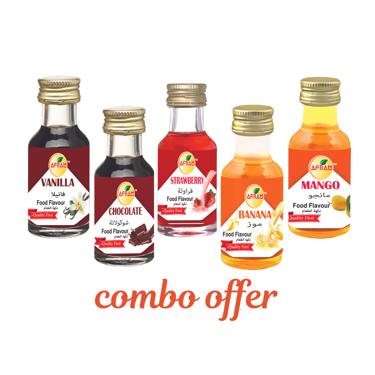 Product details of Afram Food Flavour (Essence) 5pieces Set of vanilla + chocolate + strawberry + banana + mango