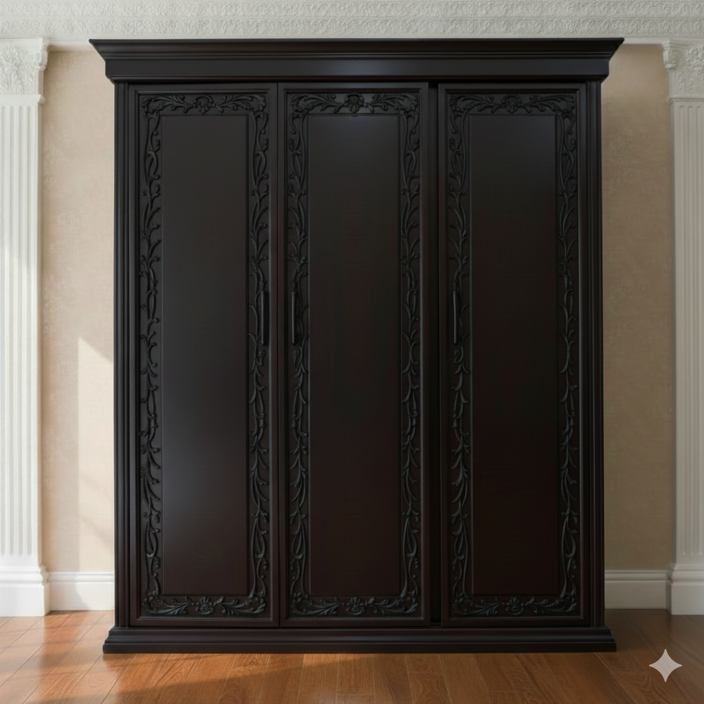 ALINA Premium Deco Paint Lacquer Polish 3 Door Almirah, Rich Home Wardrobe for Bedroom, Multiple Shelves to Organise your Clothes, Hanging Rod, Lockable Door & Drawer Almirah 72/48