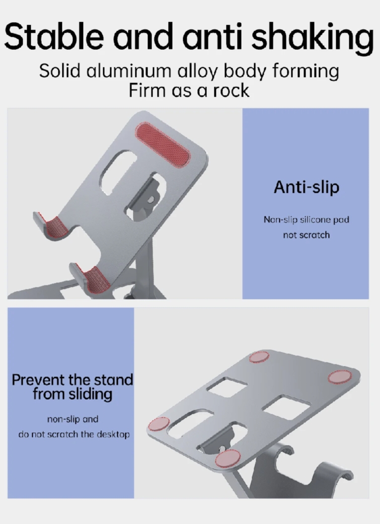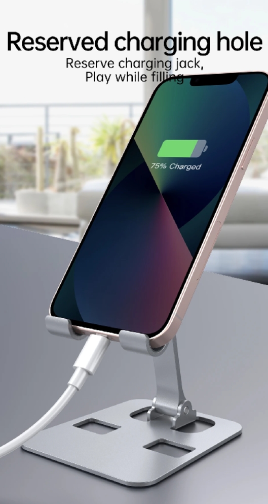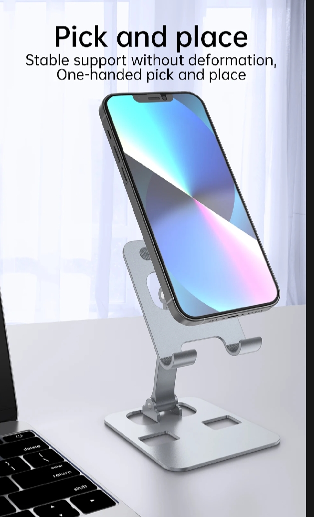 A nice adjustable phone stand for a desktop is helpful for office computer work, cooking in the kitchen for watching movies and charging tablets by the bed. A folding phone stand for the office is easy to carry in a pocket. The adjustable desk phone stand is easy to customize.