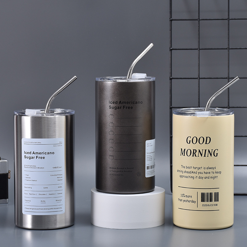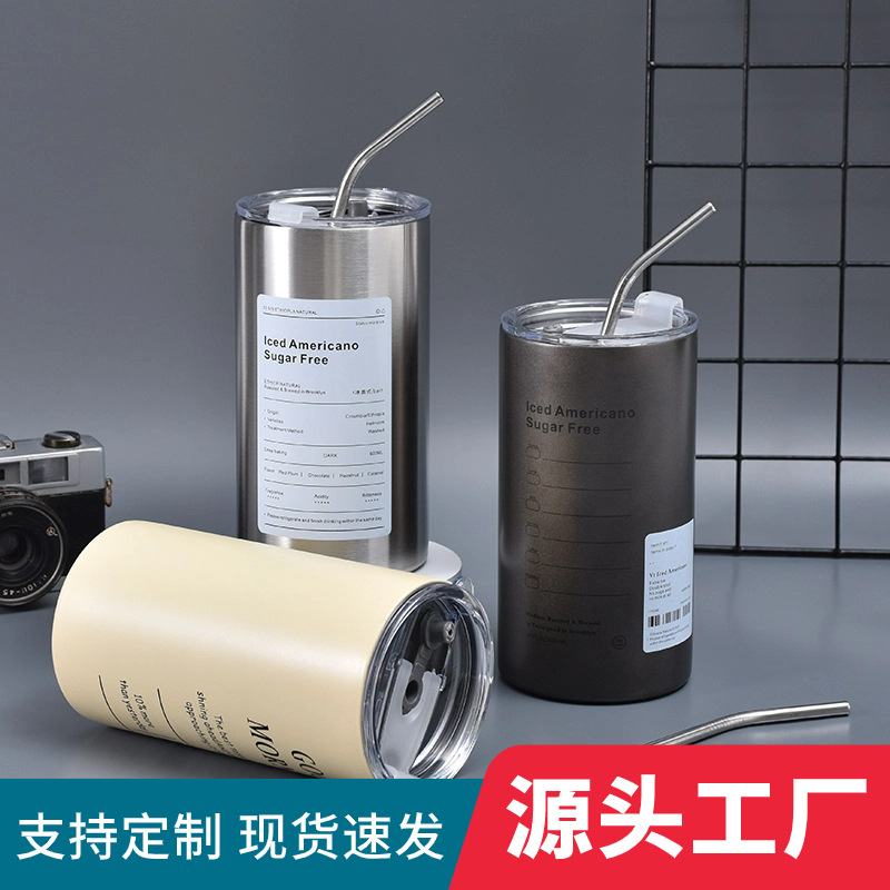 American ins style double layer stainless steel coffee cup insulated cup straw cup home office men and women portable cup bottle FOR BOYS AND GIRLS(400ml white new)