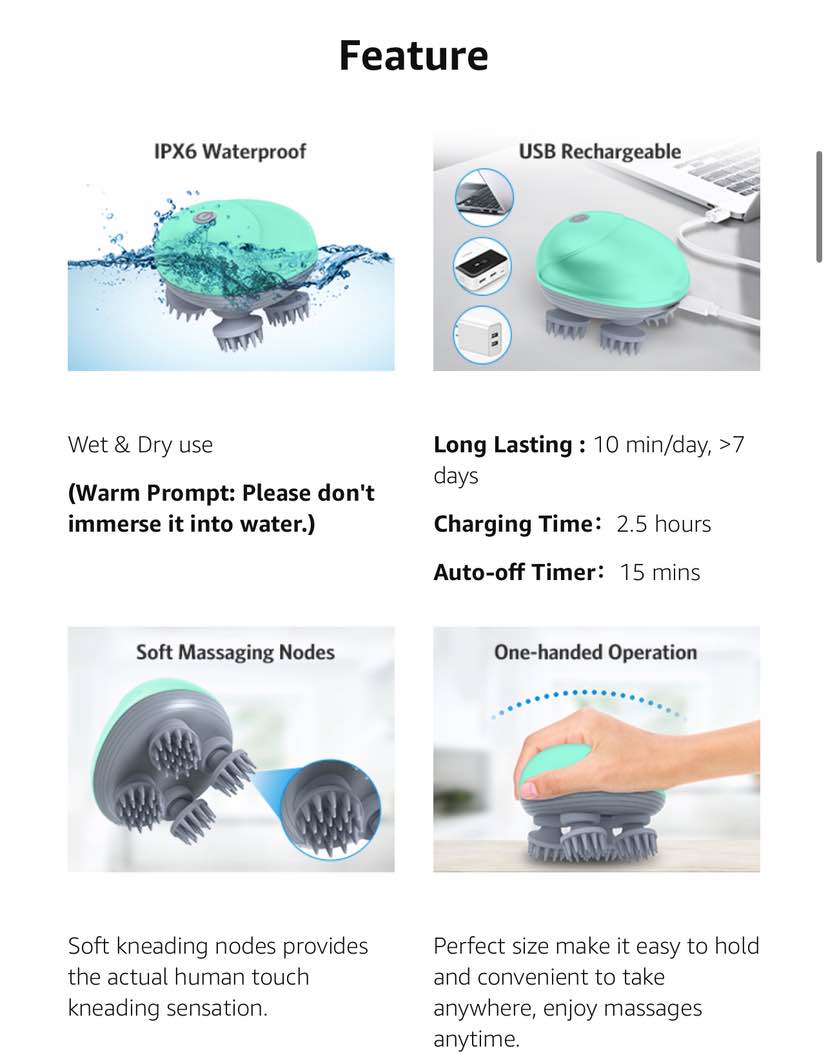 Safe to use in the shower – perfect for deep scalp cleaning while massaging.