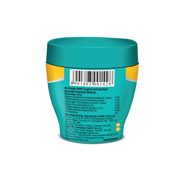 Gentle on skin and tough on cold, Amrutanjan Relief Cold Rub® is a 100% Ayurvedic remedy for cough & cold. The specialised oils give faster decongestion with a soothing aroma. So unblock your nose and breathe easy!