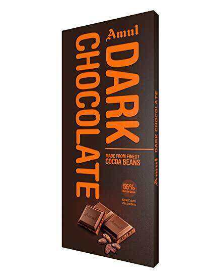 - Amul Dark Chocolate is made with the finest ingredients and delicious cocoa. For a better texture the finest particle size (approx. 20 microns) is achieved through world-class refining leaving you to indulge in the exquisite taste of rich dark chocolate.