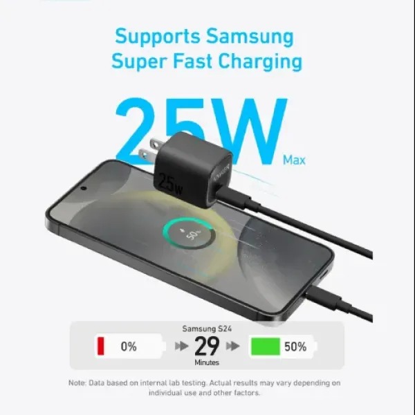 The Anker 25W Type-C Foldable Charger Adapter is designed just for you. This sleek, travel-friendly charger delivers 25 watts of high-speed power using USB-C Power Delivery (PD) technology, ensuring your gadgets charge quickly and efficiently—whether you’re at home, at work, or on the move. Optimized especially for Samsung Galaxy smartphones, the charger supports Super Fast Charging for compatible models, while also maintaining universal compatibility across a wide range of devices, including iPhones, Android phones, iPads, AirPods, and USB-C tablets. It’s a one-stop charging solution that adapts to your daily tech needs. With a 33% smaller build than standard wall chargers and a foldable plug, the Anker 25W Charger easily fits into your pocket, bag, or carry-on—perfect for travel and commuting. Don’t let its compact size fool you, though. Inside is Anker’s MultiProtect safety system, offering protection against overheating, overvoltage, and power surges, so you can charge with peace of mind. As part of Anker’s trusted lineup of charging accessories, this Anker A2656J11 Type-C Adapter offers a perfect blend of speed, safety, and portability. If you're searching for the best charger for Samsung phones or a compact USB-C wall adapter for your daily charging needs, this powerhouse delivers performance you can count on, every time.