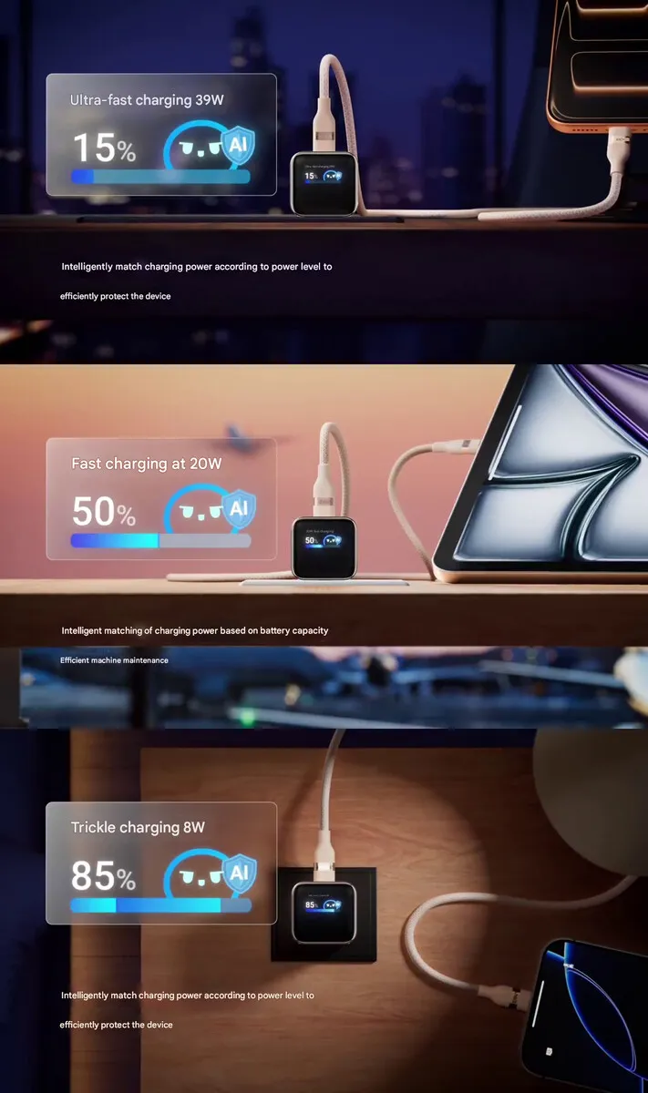 - In addition, the charger supports 45W high-speed charging, making it suitable for a wide range of devices, including the iPhone 15 Pro Max, iPad Pro, Samsung flagship phones, MacBook Air, and other USB-C gadgets. Furthermore, with compatibility for PD3.0, PPS2.0, and QC3.0, the charger offers broad support across multiple fast-charging standards, ensuring maximum flexibility for different users.