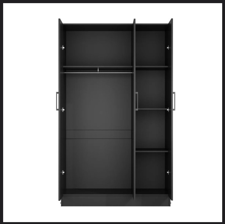 Armoire With 3 Doors With Ample Storage 1 Full View Mirrored Door Wardrobe, 3 part Almirah with Hanging Space & 5 Large sotorage shalve for your Clothes 72/48