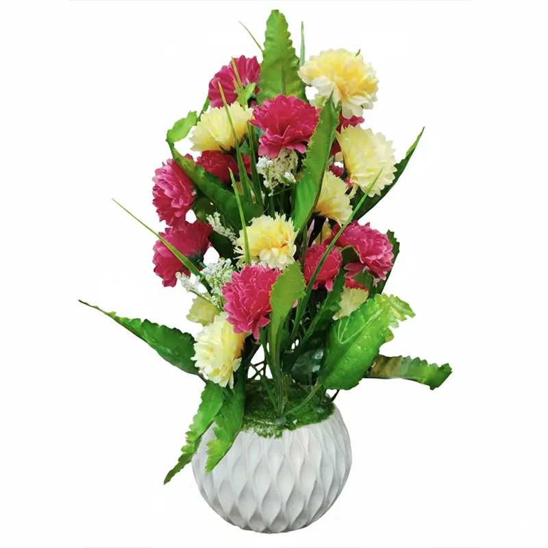 Materials: The flowers are typically made from silk, polyester, or other fabric, while the vase can be made from materials like limestone.