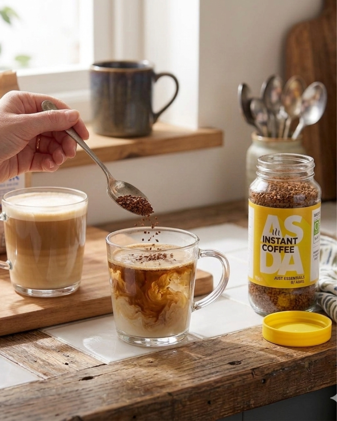 Asda Just Essentials Instant Coffee 100g offers a smooth and satisfying coffee experience at an affordable price. It is made from quality coffee granules that dissolve quickly in hot water.