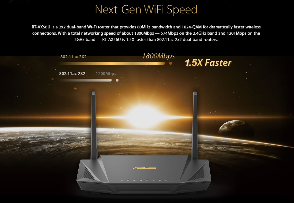 Asus RT-AX56U AX1800 Dual Band 1800 Mbps WiFi 6 Ai Protection Gaming Router