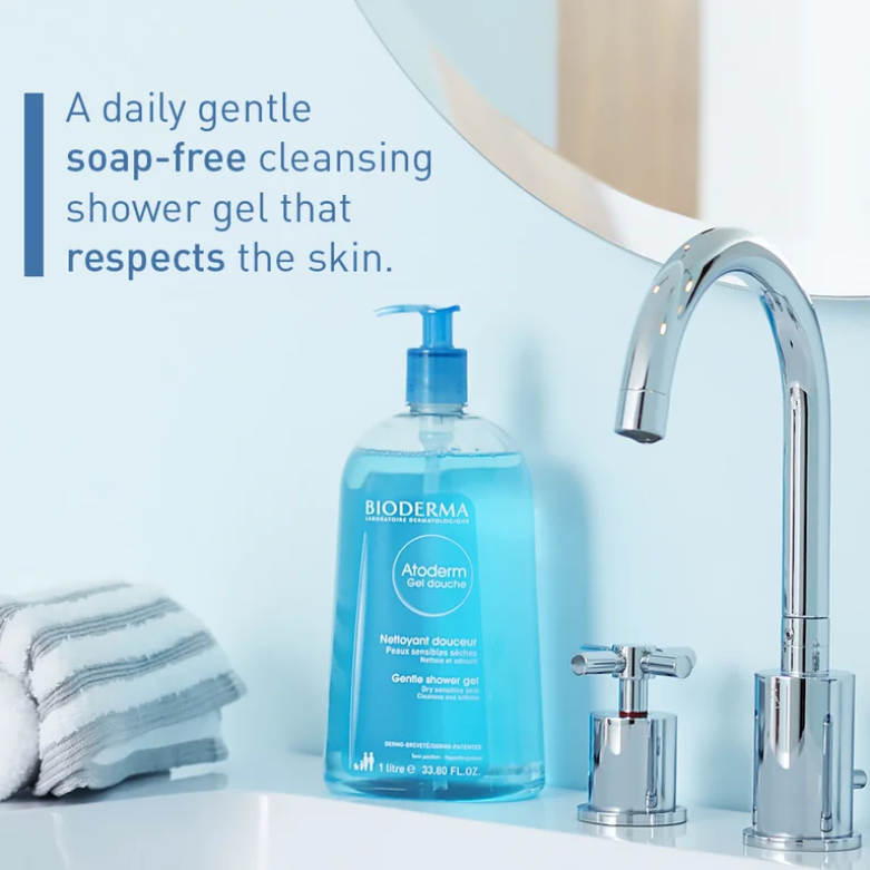 Bioderma Atoderm Shower Gel – A soap-free, ultra-gentle body wash for dry, sensitive, and irritated skin. Hydrates, soothes, and protects the skin barrier.