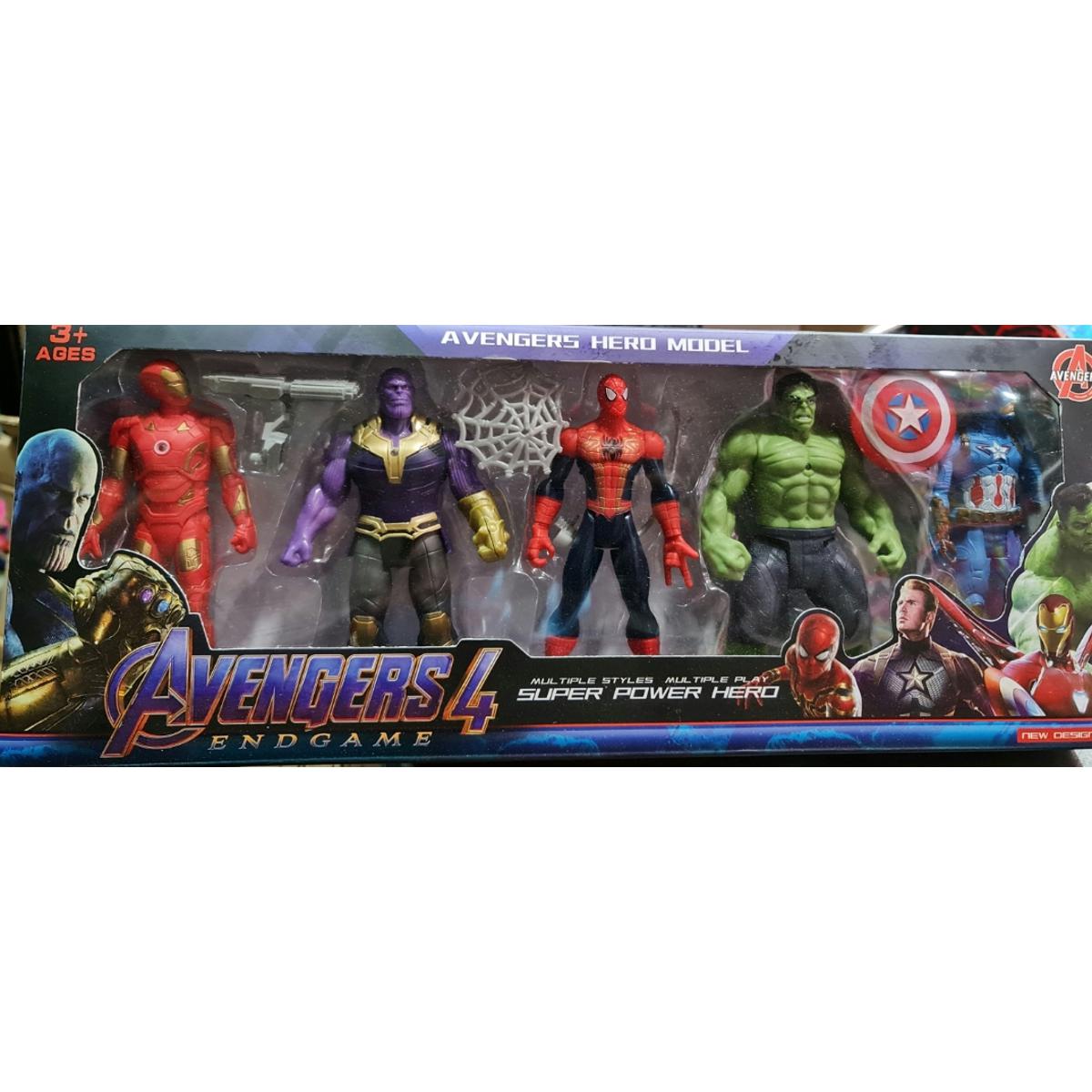 Avengers 4 Super Hero Toy Set iron man hulk Spider-Man thanos captain america(5pcs)
