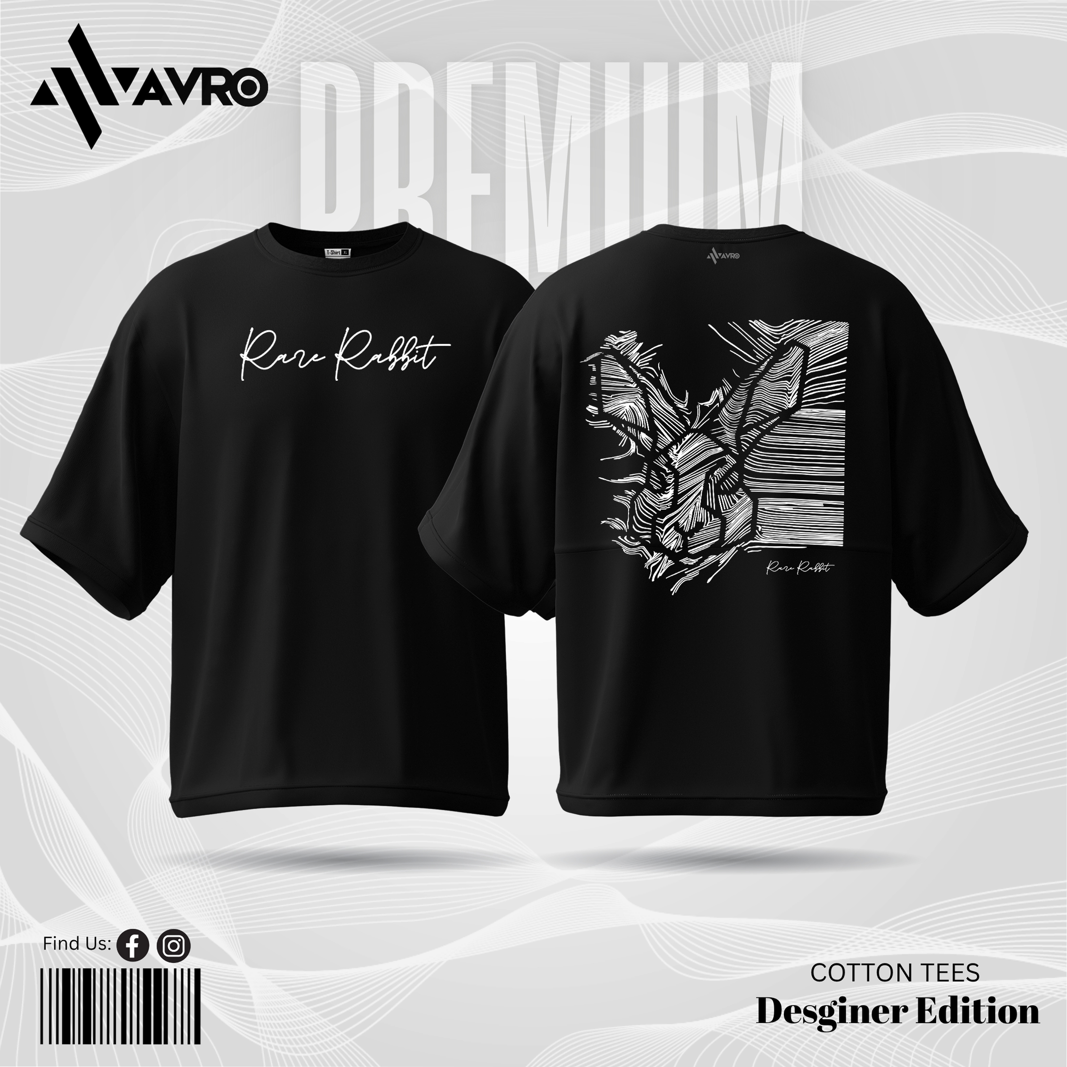 Avro Premium Men's Semi Drop Shoulder T shirt Black Color - Rare Rabbit - Cotton Fabric Soft & Comfortable - Tshirt For Men