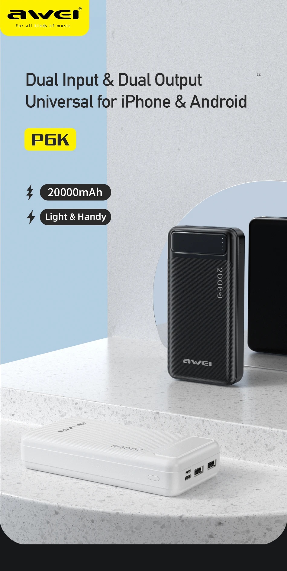 - π Awei P6K 20000mAh Double USB Power Bank β Key Features