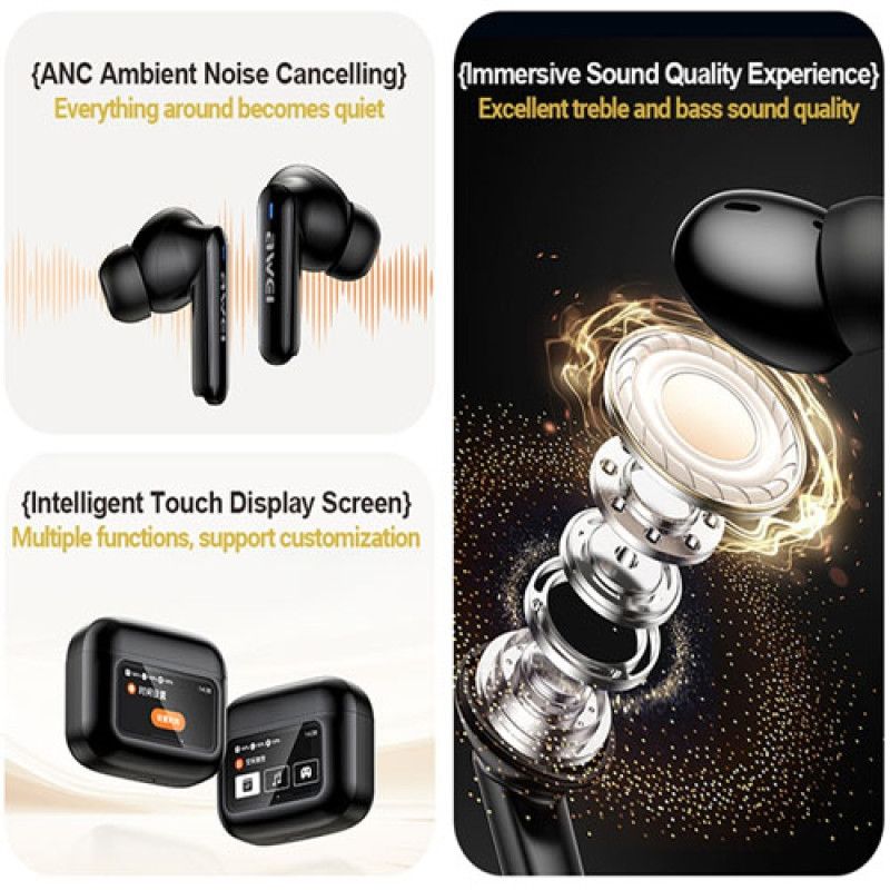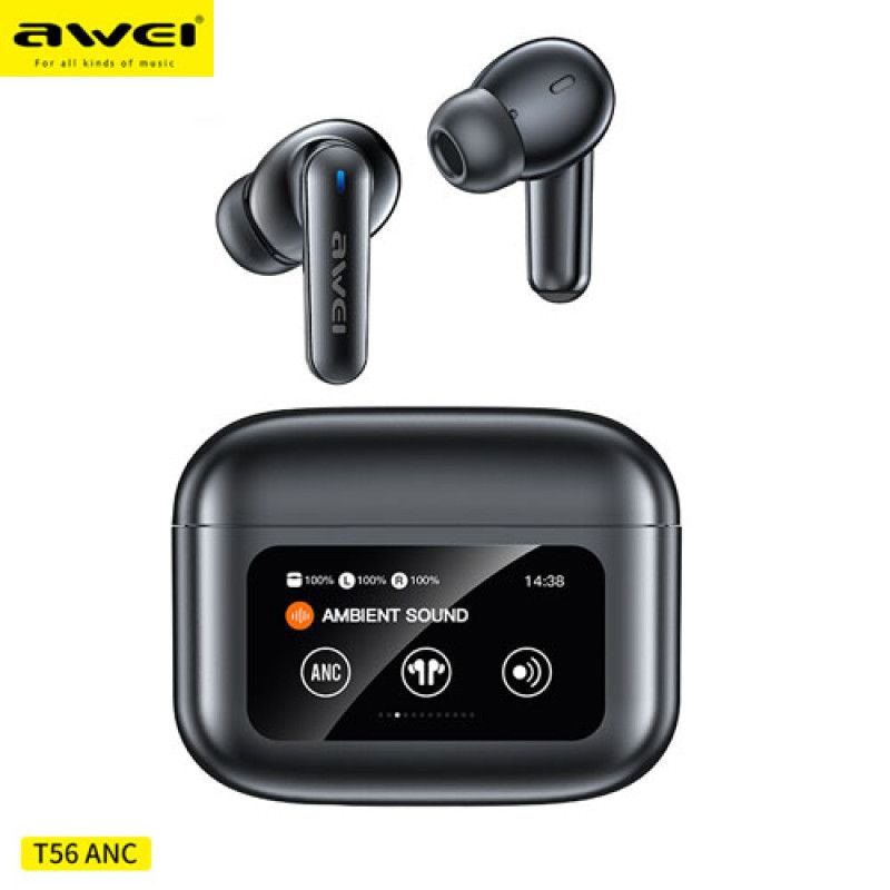 The AWEI T56 ANC TWS Earbuds bring together immersive sound, smart functionality, and an elegant display to redefine your wireless listening experience. Whether you’re commuting, working out, or relaxing at home, the T56 offers over 35dB ANC, customizable sound modes, and the latest Bluetooth 5.4 technology for a seamless audio journey.
