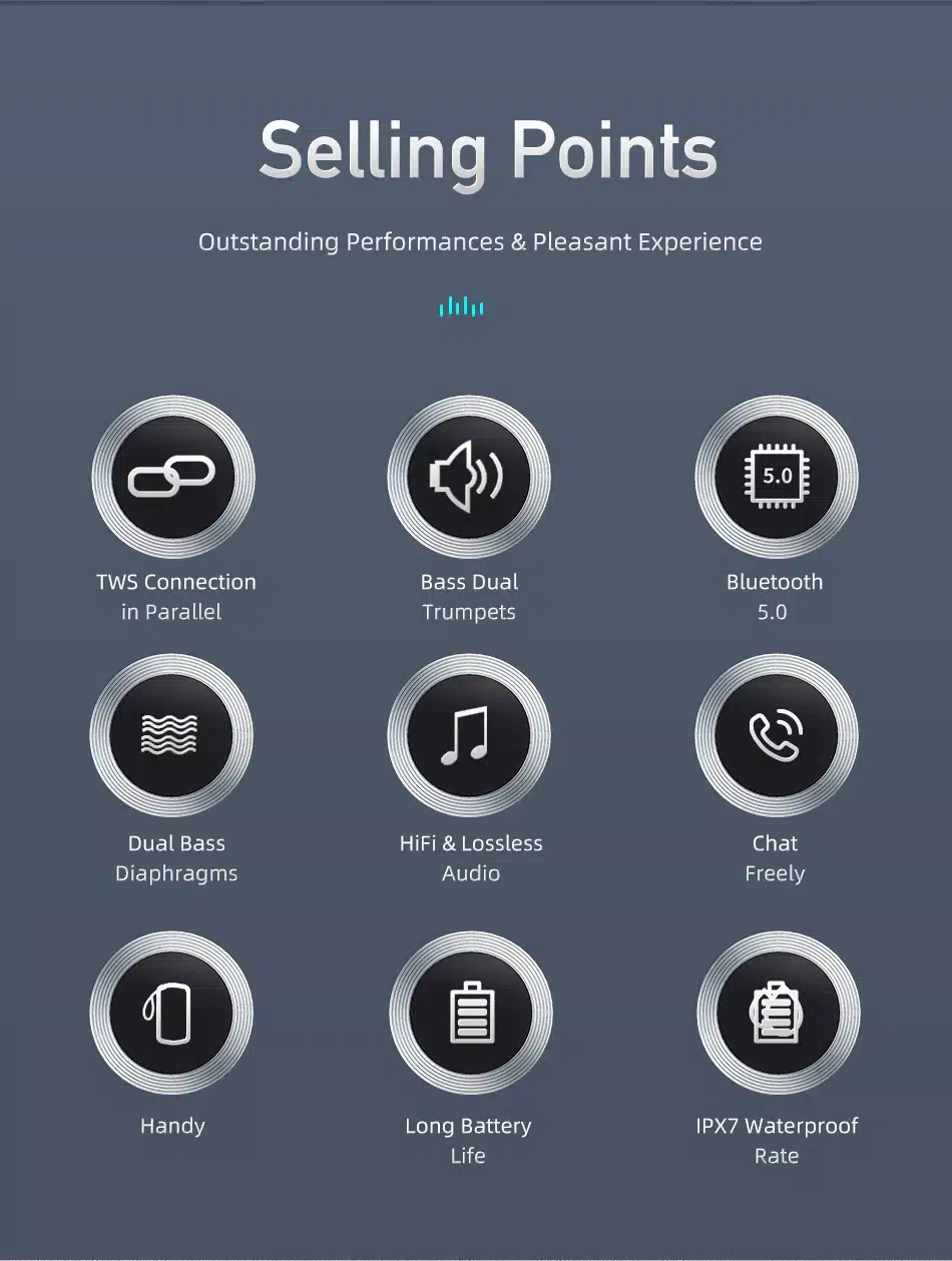 - Unique 2.1 speakers 2*8W mid-high frequency speakers+1*15W low frequency speaker